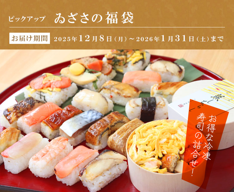 ゐざさで人気の冷凍寿司を詰合わせ! 最大27%OFF相当のお得な「福袋」。年末年始のお食事などにいかがですか?